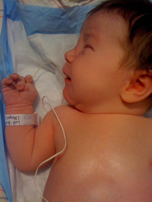Hangin' out at the hospital with Ben in my lap. He's so calm and looks so healthy.